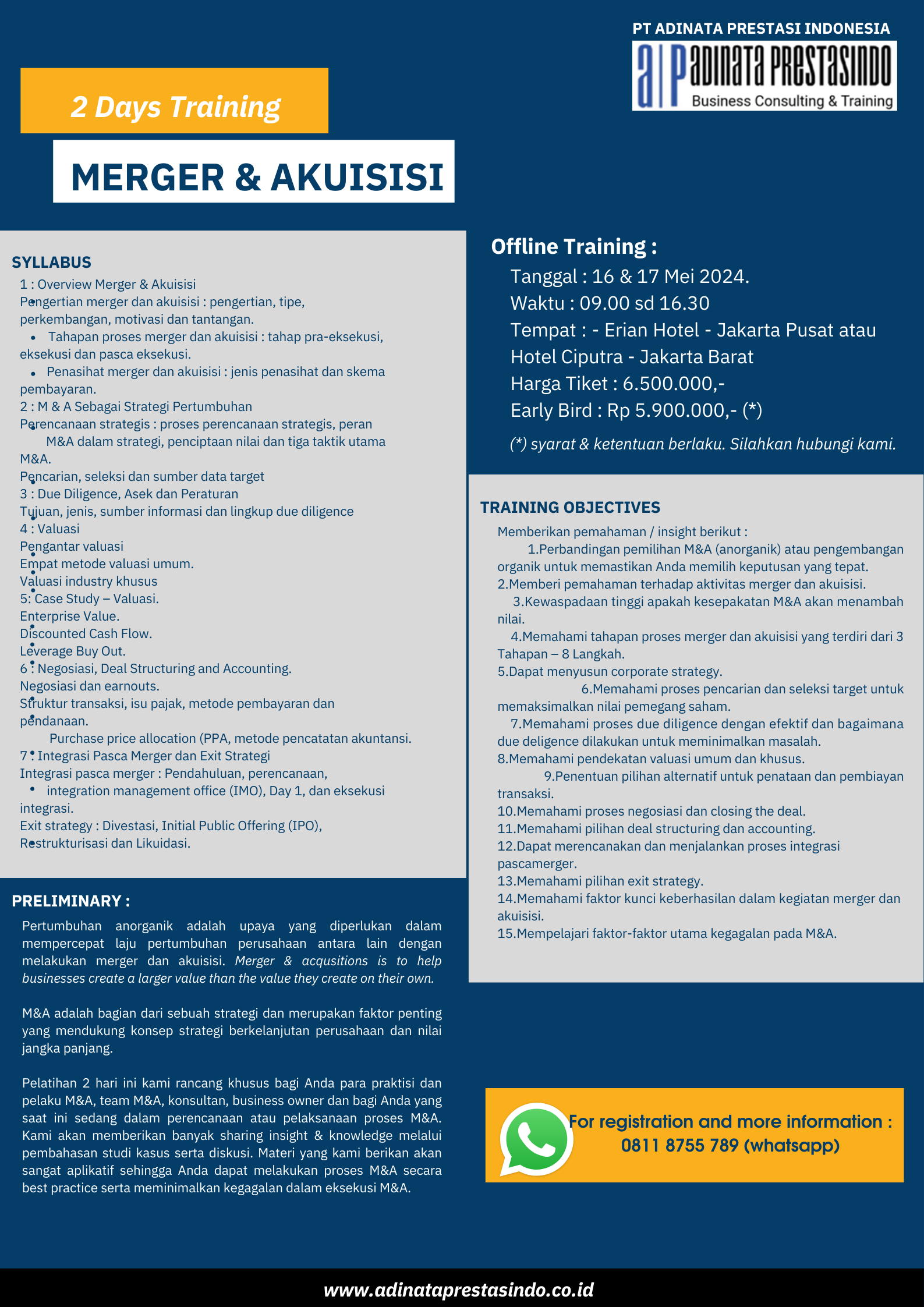 Pelatihan terbaik Merger dan Akuisisi di Jakarta oleh pembicara berpengalaman
